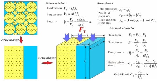 In this paper, Equation (19) is referred to as the modified rock static equilibrium equation (MRSEE), which establishes the relationship between the overburden pressure, particle stress and pore pressure per unit area. The area can be measured by porosity, and the pore pressure can be expressed as