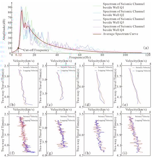 For seismic data processing, it is necessary to correct the systematic errors of the extracted low-frequency velocity as well as the synthesized absolute velocity. Logging data are generally considered reliable. Therefore, error analysis is carried out considering the sonic logging velocity as the standard. The sonic logging velocity contains the middle- and high-frequency velocity information, which is missing from the low-frequency velocity model. It is necessary to filter the sonic logging velocity to ensure that it is compared to the low-frequency velocity in a uniform frequency range. Similarly, the frequency ranges of absolute seismic velocity and sonic logging velocity are inconsistent, so it is necessary to filter the sonic logging velocity to extract a high-frequency velocity component.