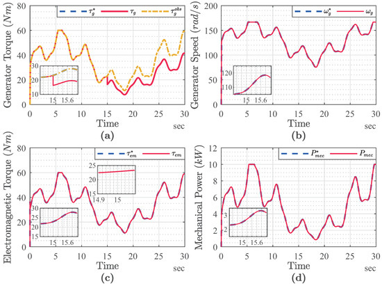 The high-speed and low-speed shafts (HSS/LSS) of the generator and the turbine are coupled by the gearbox. Assuming that the multiplier is perfect, i.e., the mechanical losses are insignificant, the multiplier can be represented by a gain , where is a simple constant [21].