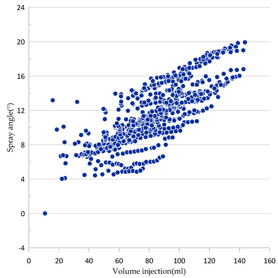 To determine the injection flow rate, an alternative calculation model of the actual injection flow rate was generated according to the characteristics of the spray angle and injection pressure as the most substantial weight variables as shown in Figure 7, accompanied by control and dependency variables for the analysis of other types of injectors.
