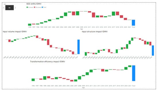 General impact of transformation inputs on the EU’s gross electricity generation in 1995–2021.