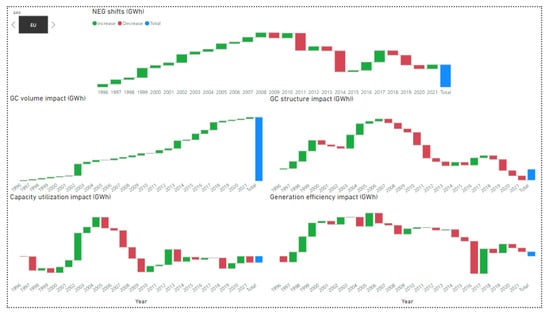 Decomposition analysis of the EU’s net electricity generation in 1995–2021. Source: Calculations by the authors based on [80,81].