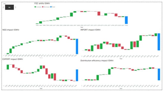 Conducting a large-scale decomposition of the EU’s electric power sector required applying the software package Microsoft Power BI (developed by IBM Corp; [86]) for big data analysis and visualization. As a result of this analysis, the effect of each of the 14 impact factors on changes in the EU’s electric power sector was determined (Table 2).