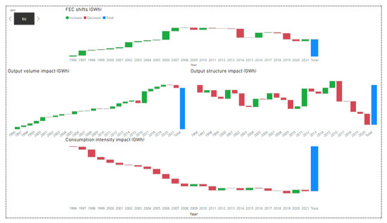 Decomposition analysis of the EU’s final electricity consumption in 1995–2021. Reprinted with permission from [79,82,83].