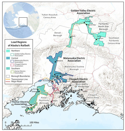 The Railbelt has four electric cooperatives: the Golden Valley Electric Association, the Matanuska Electric Association, the Chugach Electric Association, and the Homer Electric Association. These utilities are grouped into three main load regions: northern, central, and southern.