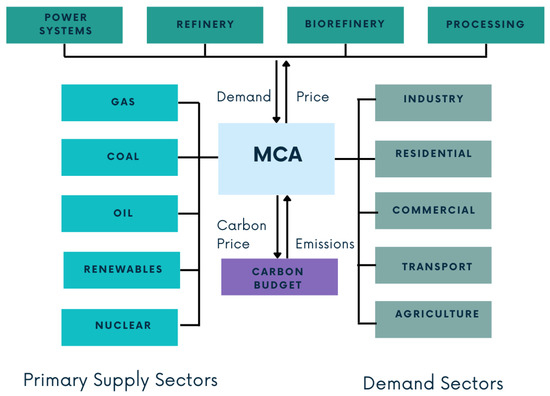 - The market clearing algorithm (MCA) is the marketplace of each of the commodities exchanged across the sectors. The price of a commodity is formed when supply meets demand. With the supply–demand mechanism, the MCA creates an interface where each sector can interact with the others. In fact, during the supply–demand process, after the sector agents have invested and operated the technologies, commodity demands are aggregated and sent to the MCA, forming a new price, which is returned to the sectors. The supply–demand mechanism is repeated by the MCA, until convergence is reached between the quantity of a commodity produced at a certain price and the quantity of the same commodity demanded at the same price. The supply–demand mechanism is repeated during every simulated period;