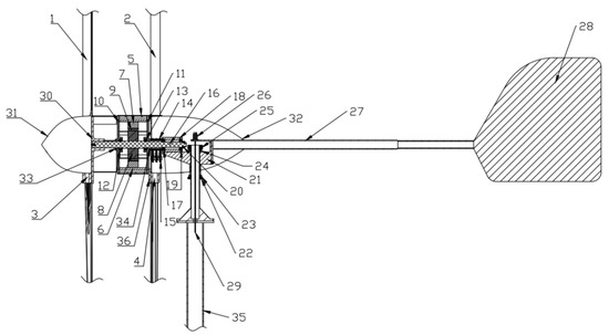 The experimentally installed dual−stage wind turbine model is basically the same as the model shown in Figure 1; the only difference is that the experimental system has no hub 31 and no yawing system. Table 1 shows the parameters when setting up the test for the novel dual−stage turbine.