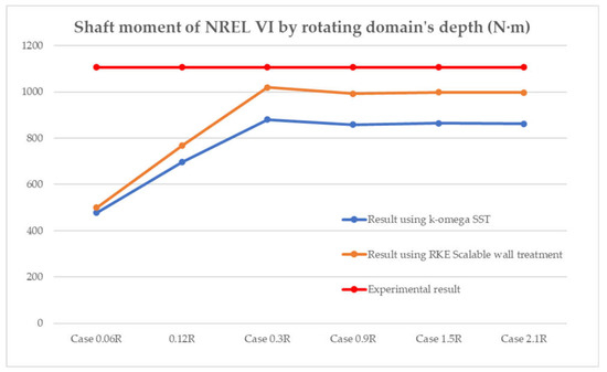 CFD shaft moment of NREL VI by the rotating domain’s depth using the MRF–frozen rotor model (N·m).