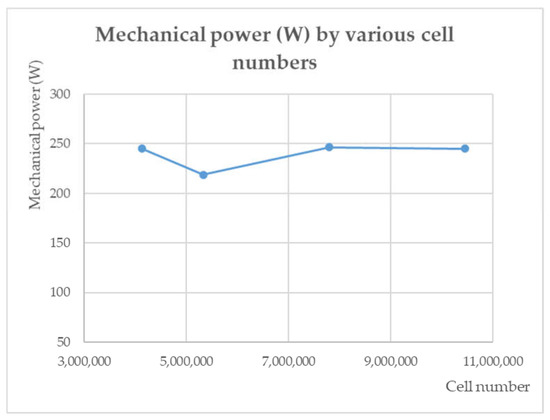 Table 7 shows the main parameters and Figure 10 shows the results of the mechanical power on the shaft according to the calculation grids with increasing element numbers: