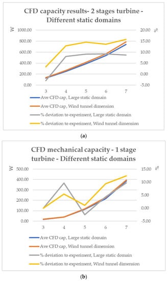 CFD results for different static domains:(a) dual−stage wind turbine; (b) single−stage wind turbine.