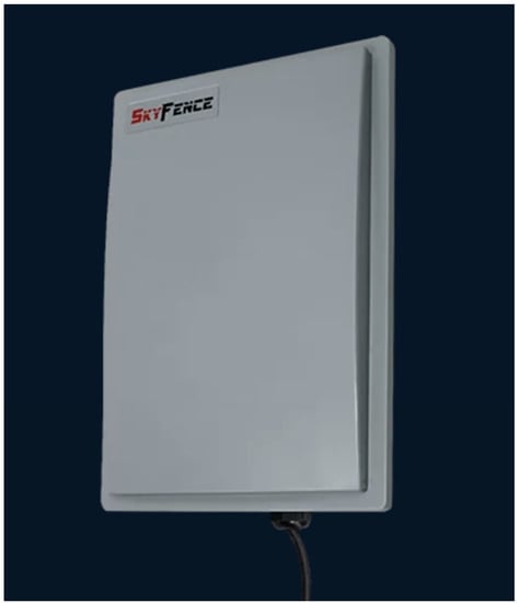 SkyFence Drone Jammer. (From dronedefence.co.uk) (accessed on 1 March 2023).