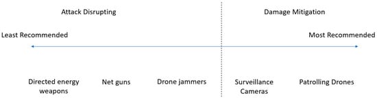 We plan to explore these recommendations to narrow the possible solutions and to identify parameters on their feasibility to limit the options. Currently, the topic and solutions are very broad, and more specifics need to be developed to come up with exact plans for implementation. Furthermore, given more recent events such as the recent attacks on power stations with firearms around the US [54], whether methods to prevent future attacks of that nature can be combined with drone defense should be seen.