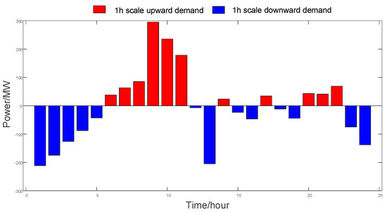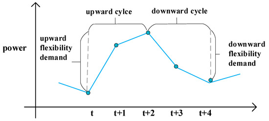 The evaluation of system flexibility includes two types: the upward flexibility demand (UFD) and downward flexibility demand (DFD). The demand for flexibility is calculated on varying time scales. Figure 1 illustrates the schematic diagram of flexibility demands.