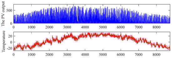 When the single input, single output prediction mode is adopted, the results can better track the PV output trend. However, the overall results still have large errors, and some of the predicted values are less than 0. To improve the prediction accuracy, the PV output and ambient temperature are simultaneously considered as the model inputs, and new prediction results are obtained.