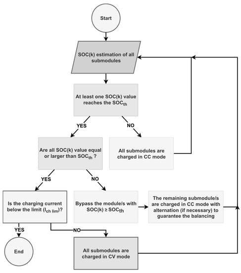 The SOC value of the battery modules determines the algorithm procedure [] as follows: