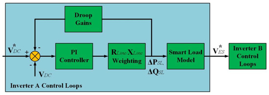 However, reverse DC gains also result in V/F fluctuations and high Q exchange between DGs. Moreover, the inverse droops prevent the straight linking of synchronous generators (SGs) to the µG. Following the installation of a supplementary L at the exit of the LC filter of the DGs, researchers [123,124] showed that standard droops may be employed in LV-Gs with acceptable performance after this. The large gains in traditional DC minimize the Q exchange between DGs, as proposed in [125,126,127]. The VαF oscillations are greatly exacerbated by high DC gain increases, particularly when the load is changed [117].