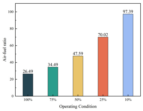 The air–fuel ratio at different rated loads.