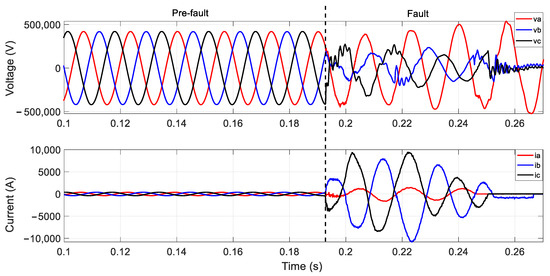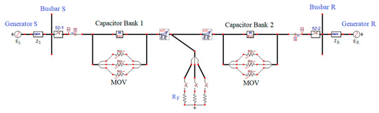 Figure 19 shows the ATP circuit used to generate fault files for the Serra da Mesa 1—Gurupi line, with the aim of applying and evaluating the developed method. Each of the two CBs has a capacitance of 135 µF, allowing for a compensation close to 60%. The transmission line model used was the distributed and frequency-variable parameter model by Martí [28].