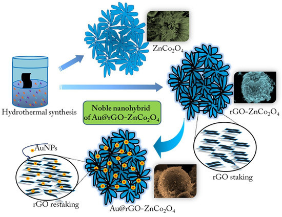 Mechanism of formation of Au@rGO-ZnCo2O4 cauliflower. Reproduced with permission from [64].