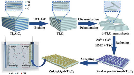 - Wang, H.; Zhang, Y.; Guo, E.; Hu, C.; Lu, Q.; Wei, M.; Ma, J.; Si, C. Vertically aligned ZnCo2O4 nanoplates on Ti3C2 for high-efficiency hybrid supercapacitors. New J. Chem. 2022, 46, 4385–4394. [Google Scholar] [CrossRef]