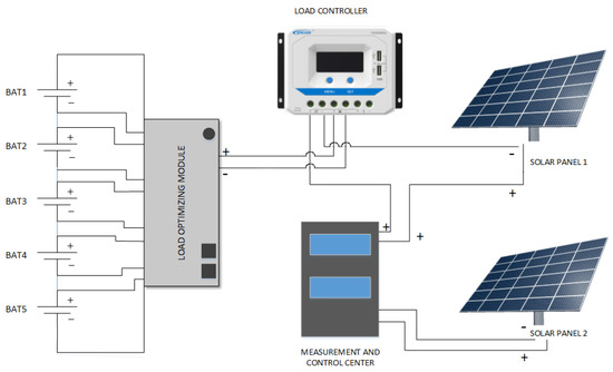 The charge controller is a system to optimize the solar’s electrical energy; the system is responsible for individually redistributing the charge to each battery. This is because the common distribution of the electric vehicle presents a joint charging of the batteries [42,60], limiting the speed and charging efficiency of the batteries. Therefore, higher charging efficiency is obtained by redistributing the energy produced to each battery separately [47,61].