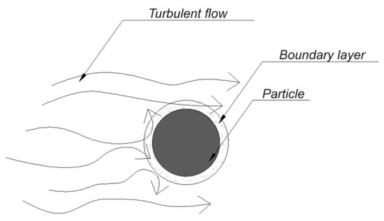 An increase in the degree of the turbulence of the flow can lead to an increase in the dissipation of the heat energy of the plasma on the powder material. Figure 11 shows the physical interpretation of the heat exchange processes between the plasma and the particle of the material immersed in the plasma.