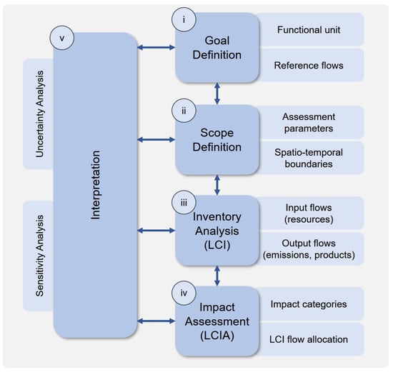 Overview of the Life Cycle Assessment (LCA) framework according to ISO 14040 [10,11,13,14].