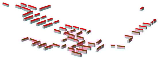 The third example is an urban district of 539 MFH constructed between 1918 and 2017 in the proximity of Hamburg (postal code area 200XX). Figure 8 shows an overview of the buildings. There is no information available about any refurbishments. Appendix A.3 lists the building materials employed in DisteLCA.