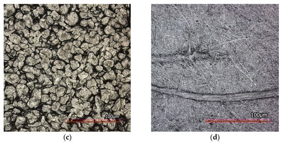 Microscopy images of the graphite electrode used (a–c) and the separator (d).