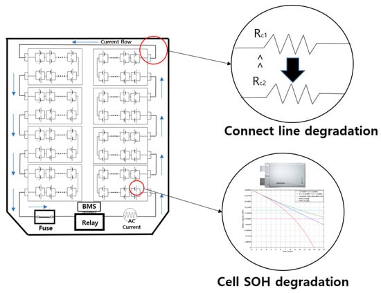 Figure 1, to evaluate the degradation characteristics of a battery based on the above standards. Battery degradation can be classified into two major categories: cell degradation and connection degradation. Cell degradation is caused by internal chemical changes resulting from the reaction of lithium ions in the cell, and such degradation can be accelerated by abnormal ambient temperatures or high currents [