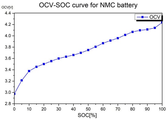 Figure 4, the open circuit voltage (OCV) of an NMC-type battery may be varied depending on the SOC, and this is due to ion relaxation between charge and discharge and the transition diffusion of active materials during charge and discharge. Depending on the characteristics of the battery, there is a section with a small slope at SOC 50% and a high slope at SOC 20% lower and 80% higher, which means relatively larger internal resistance.