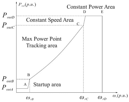 Furthermore, due to the inherent characteristic of the randomness of the wind speed, there exists a certain shock phenomenon for the input mechanical torque of the wind turbine, which is modeled as the wiener process in (14). As shown in Figure 4, in order to extract the maximum energy constantly from the stochastic wind that causes the DFIG rotor speed responses in the region of the MPPT above the startup speed and below the rated value , it is significant and challenging work to design the nonlinear stochastic adaptive control strategy for the DFIG to impose the rotor speed to rotate at the optimal rotor speed to maintain the MPPT condition based on the Itô stochastic differential equation model (1), (2) and (14).