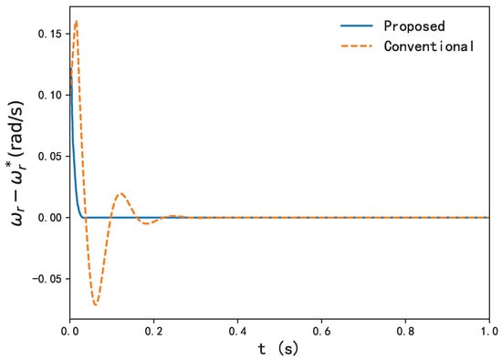 (2) In Case 2, the parameters of the system are subject to changes due to various physical phenomena; so, our controller should provide effective control when the variation of the generator parameters is bounded in comparison with the conventional backstepping controller. In order to test the robustness of the controller, we varied the rotor resistance to , the inductance value of the rotor and stator from its nominal value and the parameters of mechanical torque from their current value.