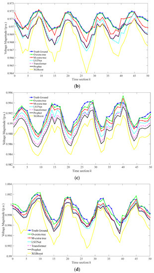 Figure 3 shows the comparison of voltage magnitude prediction results for test sets in March, June, September, and December 2016. Voltage phase prediction results for test sets in March, June, September, and December 2016 can be found in