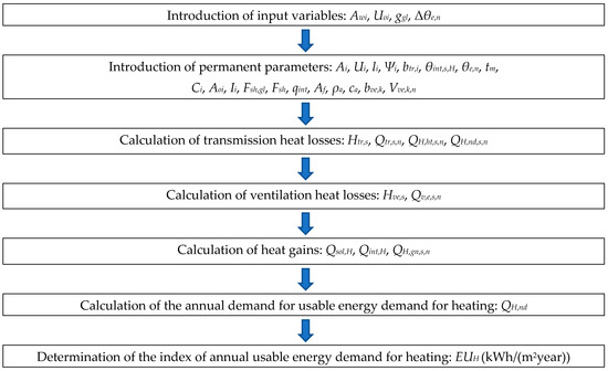 2.3. Mathematical Model of the Index of Annual Usable Energy Demand for Heating a Selected Residential Building