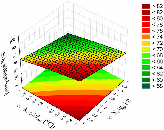 - It was found that the warming climate, expressed only in terms of an increase in the average monthly external temperature in the individual months of the heating season Δθe,n, practically does not change the degree and nature of the influence of selected window parameters on the energy performance of the building. The most significant influence (18.3%) among the analyzed factors is the total solar transmittance factor of glazing ggl and the degree of increase in average monthly external temperature throughout the year Δθe,n (16.7%). In contrast, the effect of the change in window area on EUH is much smaller, amounting to about 4.2%.
