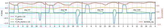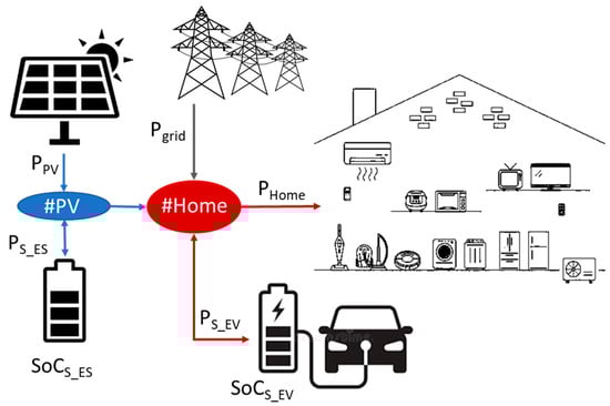 In Figure 2, at the HOME and PV nodes, the energy balance set out in Equations (1) and (2) must be met: