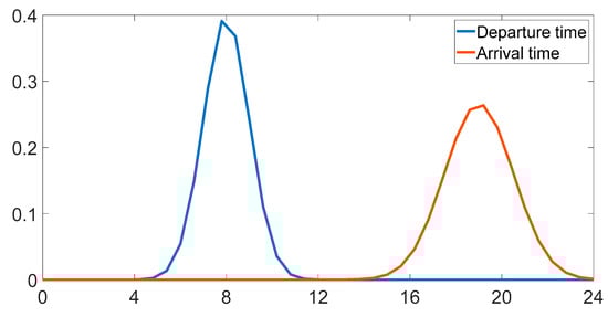 The battery fear (anxiety) cost is an attempt to penalize the difference between the battery SoC at the departure time () and the driver’s required battery SoC () at the beginning of the day (10).