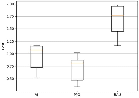 - A comparison with non-optimized and deterministic solutions was conducted to highlight the superiority of the proposed PPO-based HEMS system in terms of energy cost reduction. The results show the superiority of the PPO over the non-optimized and deterministic methods on the relative daily energy cost.