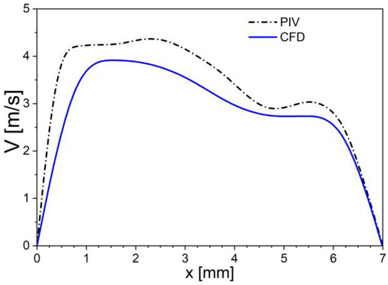 Comparison of velocity profiles derived by the CFD method and gained from PIV.