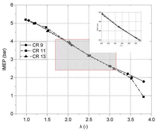 nIMEP results over a range of λs for different compression ratios.