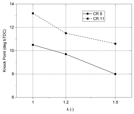 Knock point locations for CR 9 and 11 over the tested λ cases.