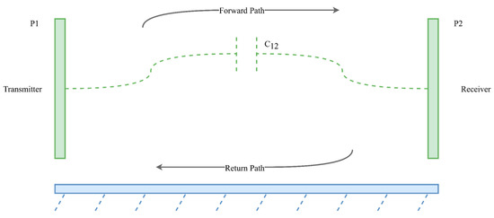 While most CPT systems have parasitic capacitances in the Pico or nano-farad range [30,47,49,68,78], the accounting of these is critical in ensuring high-efficiency operation, as including these in a resonant frequency calculation is important when designing impedance matching circuits. Ref. [81] found that increasing the area of the coupling plates can also increase the mutual capacitance of the coupler in a linear relationship (mutual capacitance doubling as plate size doubled for a unipolar design).