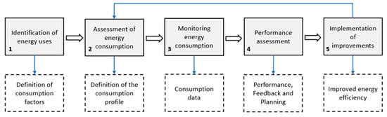 Therefore, electrical energy management in buildings becomes essential to reduce energy demand [4,8] and to improve energy efficiency [9,10]. To do so, it is necessary to determine how the electrical energy is being used, allowing the acquisition of information to propose solutions that increase efficiency [11,12]. From the information on energy use, it is possible to characterize buildings through indicators that can be used to direct the actions of energy management in organizations [13].