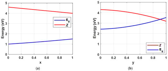 Figure 5 illustrates the CBO dependence on different x and y values. The affinities of the ETL and the absorber with their corresponding energy gaps are listed in