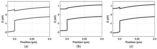 Figure 6, which shows the energy band diagrams of these two cases compared to the initial structure. Although the initial design reveals a favorable spike-like band offset as