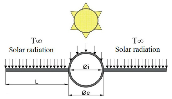 The research carried out in this study is focused on increasing or improving solar energy usage. It involves managing the heat flow, where CFD software is used to validate the temperatures achieved. As explained by Panchal and Patel [16], the geometry and mesh of the construction model are realised using software for different applications (solar collectors and drying chambers, among others). The CFD validation exhibits acceptable results in the design and improvement of compact heat exchangers, as can be appreciated in the study by Abeykoon [17], who demonstrate that this type of validation may be utilised for different design options without requiring the manufacturing of prototypes that employ working fluids with different thermodynamic properties. Considering research works like those by Abeykoon [17], it is essential to emphasise the improvement of the DX-SAHP system’s performance, which is directly related to the efficiency of its components, such as the collector/evaporator, which has been studied by authors like Combariza et al. [11] and Sun et al. [12]. Nevertheless, these works did not investigate the influence of geometric variation in the cross-section of the heat flux in order to improve the efficiency of this device. This research aims to conduct CFD simulations and numerical analysis of various geometric profiles that are different from the traditional circular pipe to obtain results through a comparative figure to show improvement through a more significant outlet temperature than the original model.