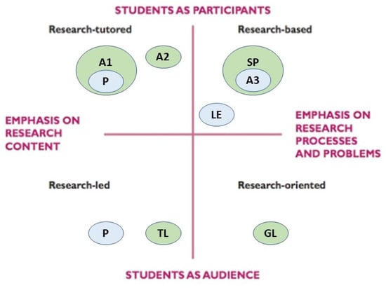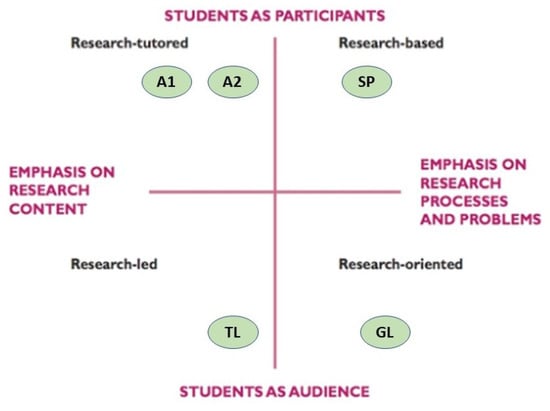 - Healey, M. Linking research and teaching to benefit student learning. J. Geogr. High. Educ. 2005, 29, 183–201. [Google Scholar] [CrossRef]