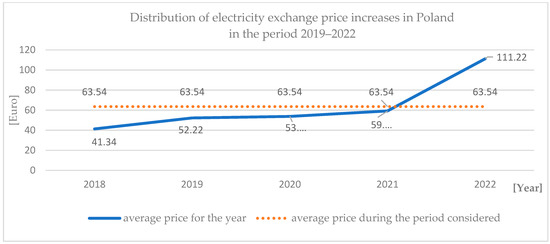 Distribution of electricity exchange price increases in Poland in the period 2019–2022.