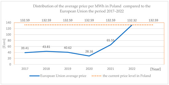 Average prices in the competitive market in Poland compared to the European Union are below average—Figure 4 [38,39].